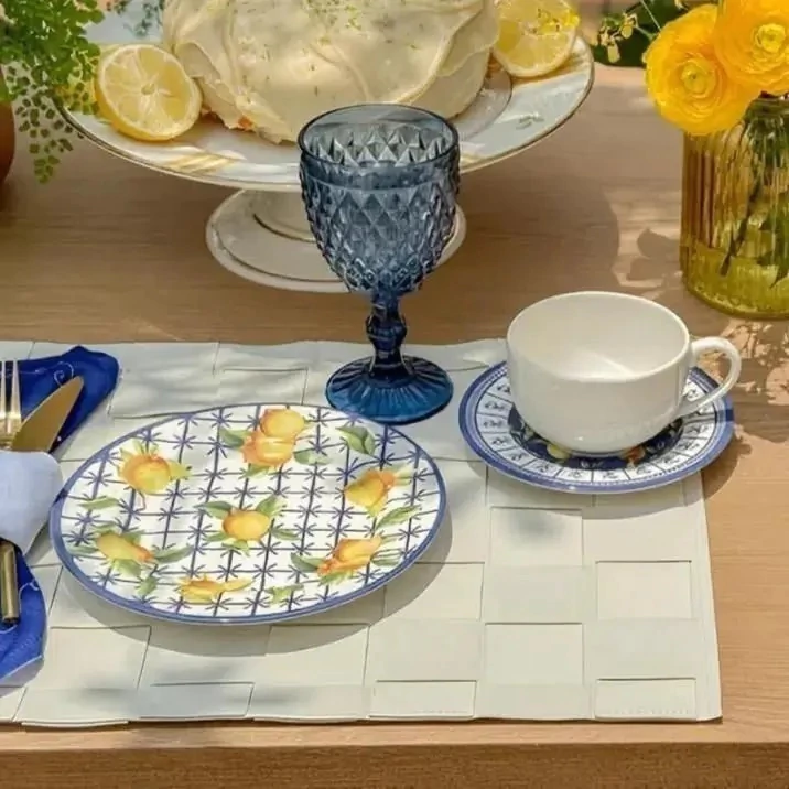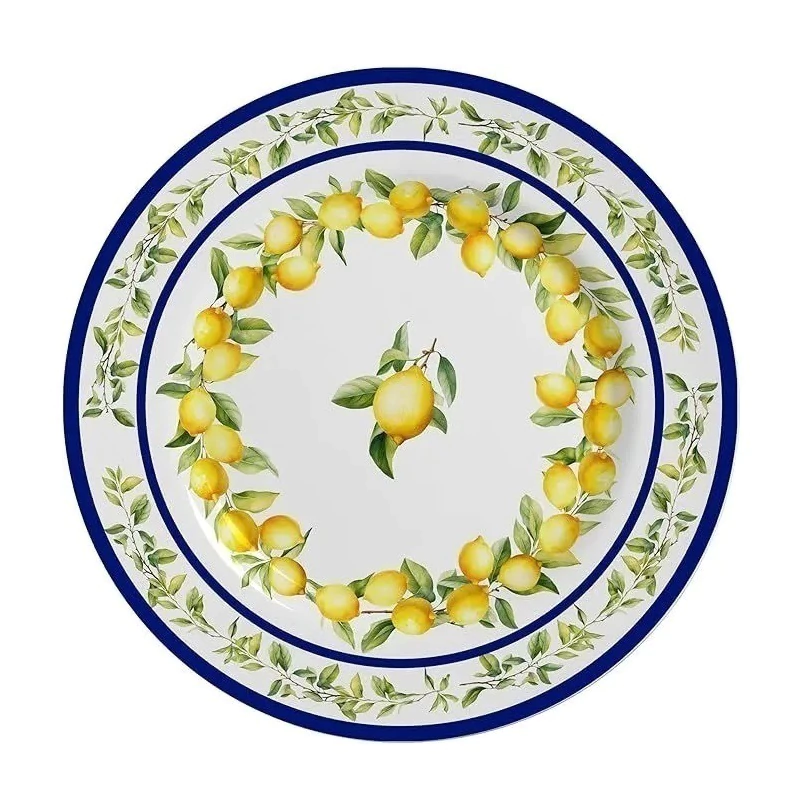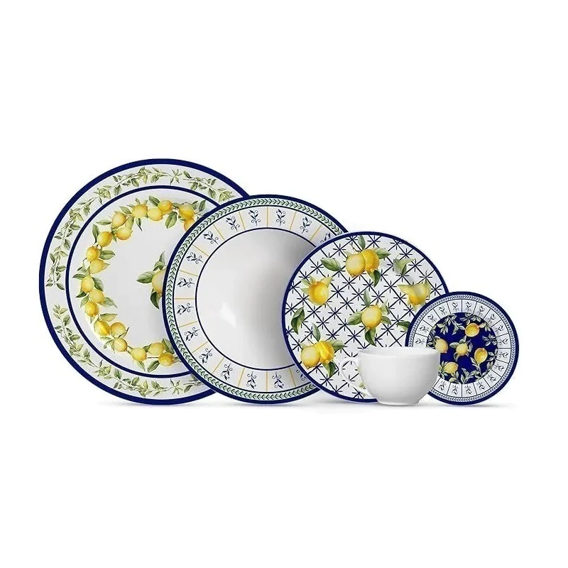 O Aparelho de Jantar Limon contém peças elaboradas em cerâmica feldspática branca de baixa absorção e alta resistência, com processo de decoração digital, sobre base branca.