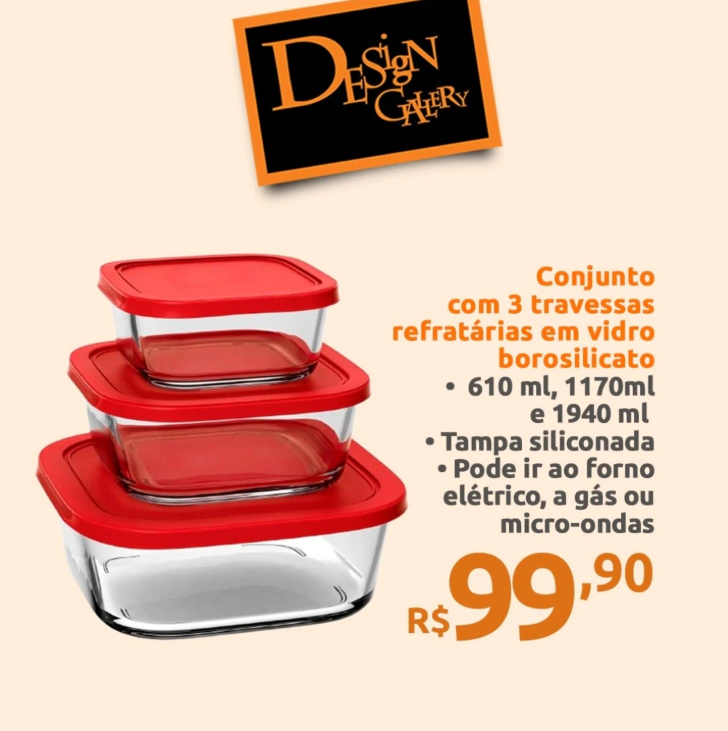 Conjunto 3 Travessas Refratárias em Vidro R$99,90