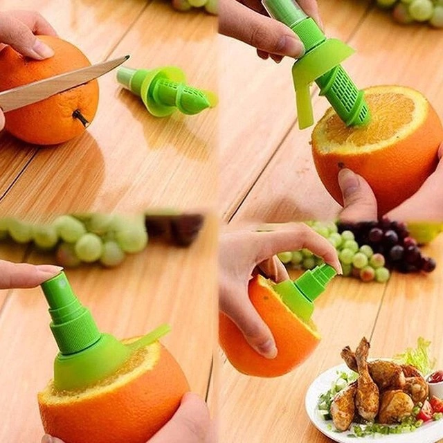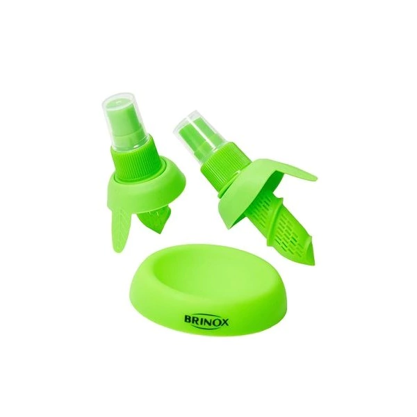 O conjunto possui três peças: spray maior, spray menor e uma base para apoiar o limão. O spray maior é ideal para limão Siciliano e o spray menor para limão Taiti. Você pode usar este utensílio em frutas como limão, laranja, tangerina e em outras para temperar saladas, peixes, frangos e outros alimentos que preferir. Tempero sempre fresquinho e natural para suas refeições ficarem mais saudáveis!