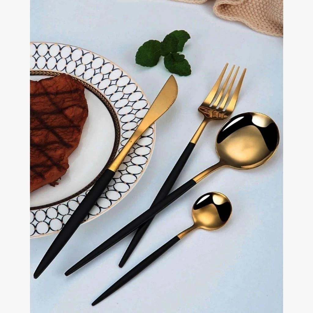 Faqueiro Dourado com Cabo Preto/Branco - 24 peças