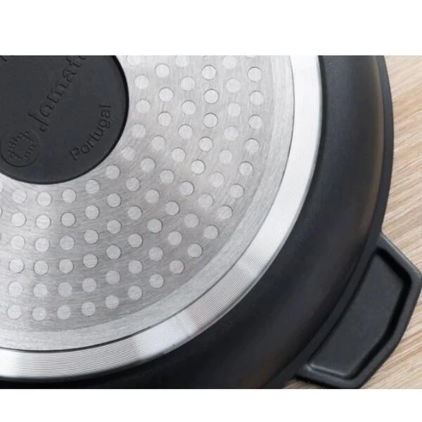 A linha Biocook é mais uma linha especializada da Jomafe. A Biocook Plus foi idealizada pela Jomafe de forma a permitir cozinhar de forma eficaz a baixas temperaturas, permitindo assim, manter as características dos alimentos selecionados. Uma outra vantagem é que não necessita que use grandes quantidades de gordura para preparar os seus legumes, carnes ou peixes, pois o seu fundo permite uma distribuição homogênea do calor. Maior efeciencia e excelentes resultados é o que pode esperar da gama Biocook Plus. O pegador em Soft Touch é ergonômico, proporciona maior conforto e segurança ao manuseio. Ideal para todas as fontes de calor, incluindo fogão de indução.