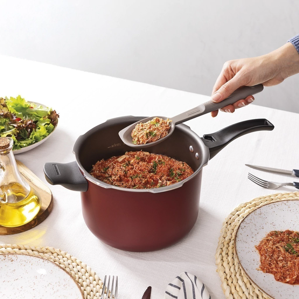 A Panela de Pressão Vancouver Effect 4,5L possui corpo de alumínio com espessura de 3,2mm que proporciona cozimento rápido e uniforme. Com revestimento interno e externo de antiaderente Starflon Max que não gruda, é fácil de limpar, mais durável e não é prejudicial à saúde. A tampa é de alumínio com acabamento externo polido e interno satinado. A alça, cabo superior e inferior de baquelite antitérmico que oferecem segurança durante o manuseio.