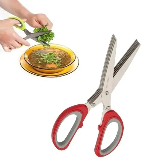 Tesoura Para Temperos 5 Lâminas + Pente de Limpeza